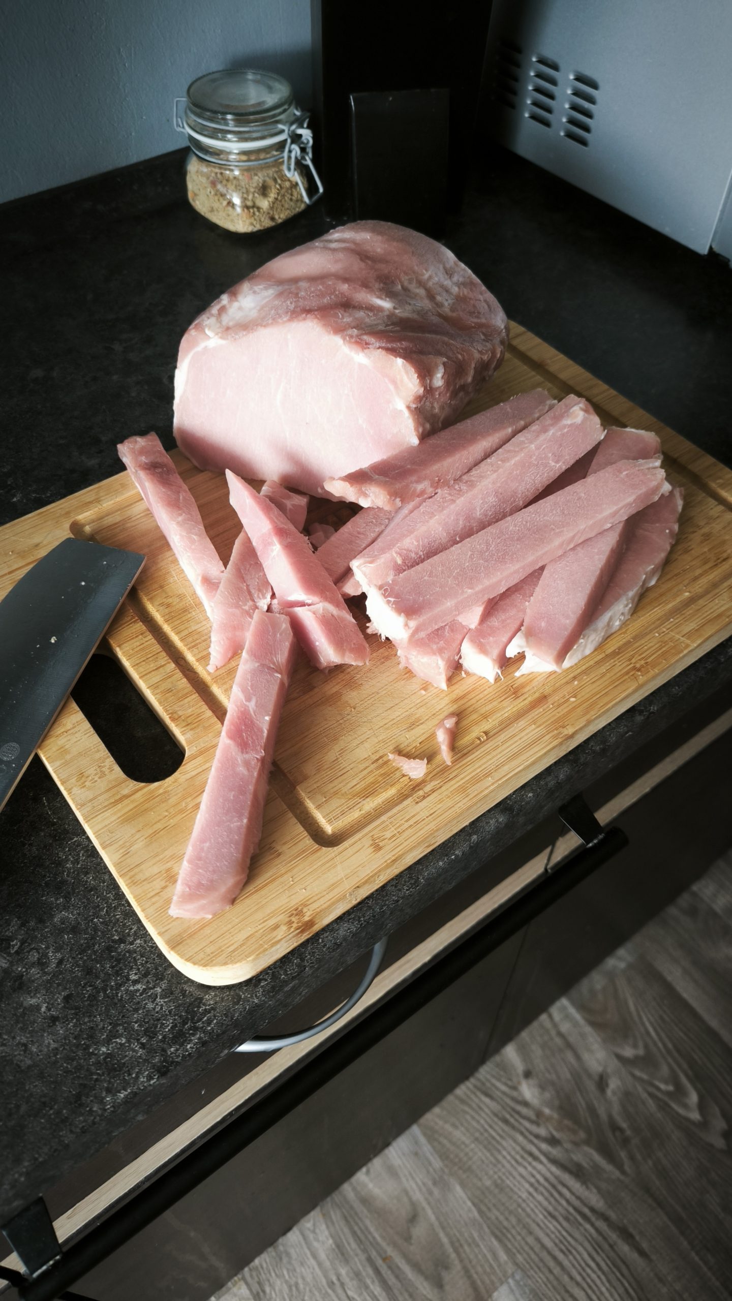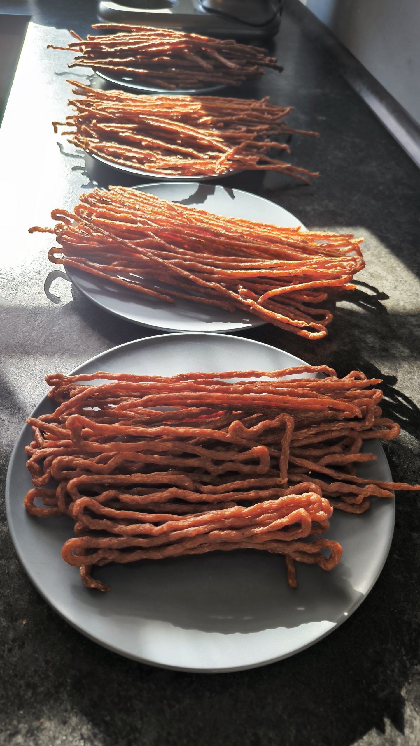 Pro výrobu masových tyčinek se nejlépe hodí hovězí zadní v kombinaci s vepřovou pečení. Pro dosažení šťavnatější konzistence lze přidat i malé množství tučnějšího masa – ideálně do 10 %.